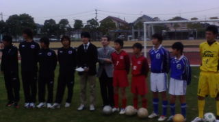 小学生チームは,佐賀県トレセンメンバーの旭FCの末次,犬塚,上峰少年SCの宮地,渡辺,4選手。強力な助っ人として,今年の高校選手権に出場した佐賀北高校GKの田中選手。